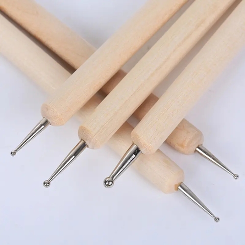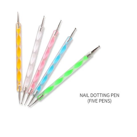 ปากกาเจาะไม้หัวสองด้าน5ชิ้น, ปากกาทำเล็บออกแบบศิลปะเครื่องมือทาสีจุดปากกาเจาะโลหะไม้