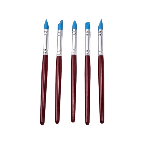 ชุดเครื่องมือแกะสลักรูปแปรงทำจากซิลิกอน5ชิ้นรูปทรงเครื่องปั้นดินเผาแปรงทำจากยาง