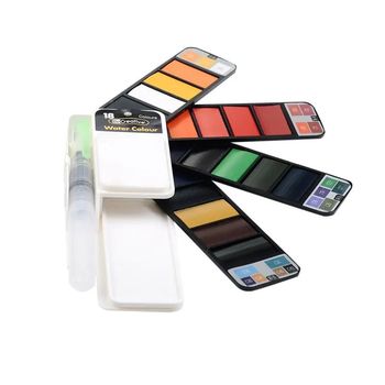Set cat air Solid yang dapat dilipat, berbentuk kipas 18 warna dengan pena kuas air